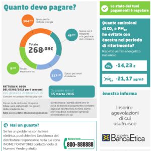 Ora però vorremmo dedicarci alla cura della grafica, alla chiarezza nella comunicazione, alla completezza delle informazioni. Abbiamo già predisposto una prima bozza di bolletta tutta nuova, con tanto di emissioni e di polveri sottili evitate. Ma la versione definitiva la vogliamo costruire insieme a voi soci, per essere sicuri che sia leggibile, esaustiva e che incontri le vostre esigenze e la vostra sensibilità, non solo quelle della normativa o del mercato.