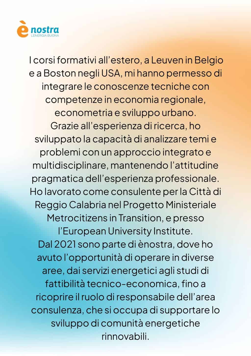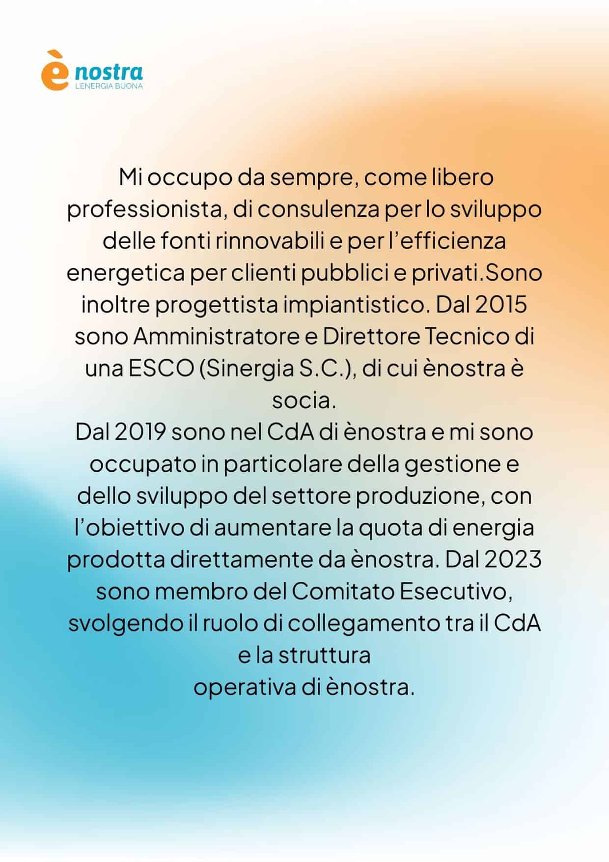 Nel Team di ènostra: Responsabile Comunità Energetiche e Consulenza