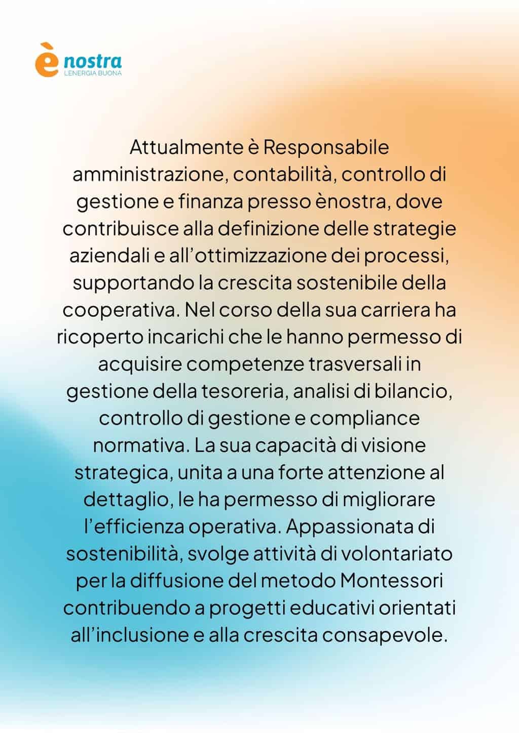 Nel Team di ènostra: Responsabile Amministrazione e Finanza e Controllo di Gestione