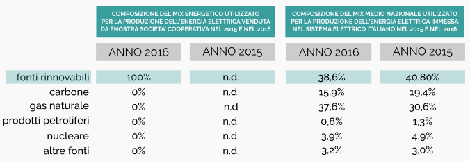 ;E’ una domanda che ci viene posta spesso e in effetti merita un approfondimento. Ogni fornitore è tenuto a dichiarare il proprio “mix energetico”, ovvero l’insieme di fonti energetiche primarie utilizzate per la produzione di energia elettrica fornita ai clienti finali (v. sezione Comunicazione relativa al mix energetico). Quindi, quale che sia il proprio fornitore, si troverà in bolletta una tabella con questa informazione relativa agli anni 2016 e 2015 e si potrà verificare quanta dell’energia venduta nell’arco dell’anno precedente proviene da fonte rinnovabile.