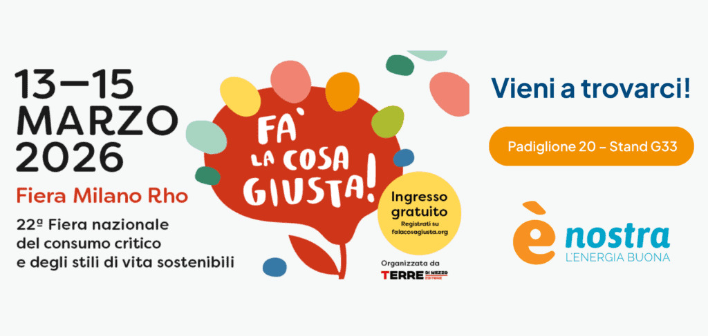 Dal 13 al 15 marzo 2026 presso la Fiera Milano Rho si terrà Fa’ La Cosa Giusta, la fiera del consumo critico e degli stili di vita sostenibili. Come al solito ènostra sarà presente: ci troverete presso lo stand G33 nel padiglione 20.