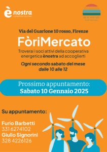 A gennaio 2025, i soci fiorentini di ènostra hanno iniziato a tenere uno Sportello Informativo sulla cooperativa, che è attivo dalle 10 alle 12 ogni secondo sabato del mese presso la rete FòriMercato, progetto sociale e collettivo improntato al mutualismo e all’aiuto in comunità, in via del Guarlone 10 rosso, a Firenze.