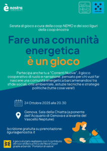 La serata è gratuita e aperta a tutti, socie e soci di ènostra, cittadini, appassionati di giochi di ruolo, a chi si avvicina per la prima volta al tema delle CER, ma anche a chi fa già parte di una CER e vuole cimentarsi nella gestione dei processi di governance interni.
